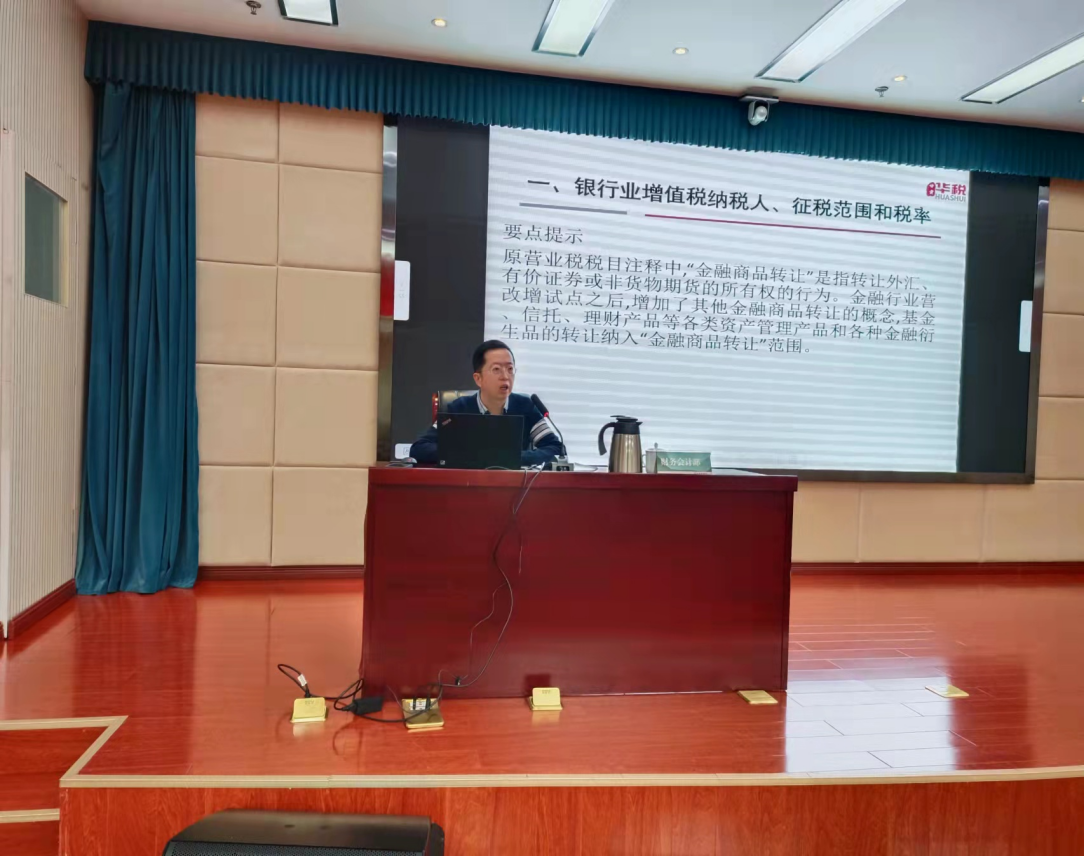 甘肅華稅所長李智勇就農(nóng)業(yè)銀行增值稅及稅務(wù)風險管理進行了專業(yè)的講解。講解內(nèi)容圍繞以下幾個方面開展:銀行業(yè)增值稅納稅人、征稅范圍和稅率;銀行業(yè)增值稅銷售額;銀行業(yè)增值稅進項稅額;銀行業(yè)增值稅稅收優(yōu)惠;銀行業(yè)稅務(wù)風險管理。
