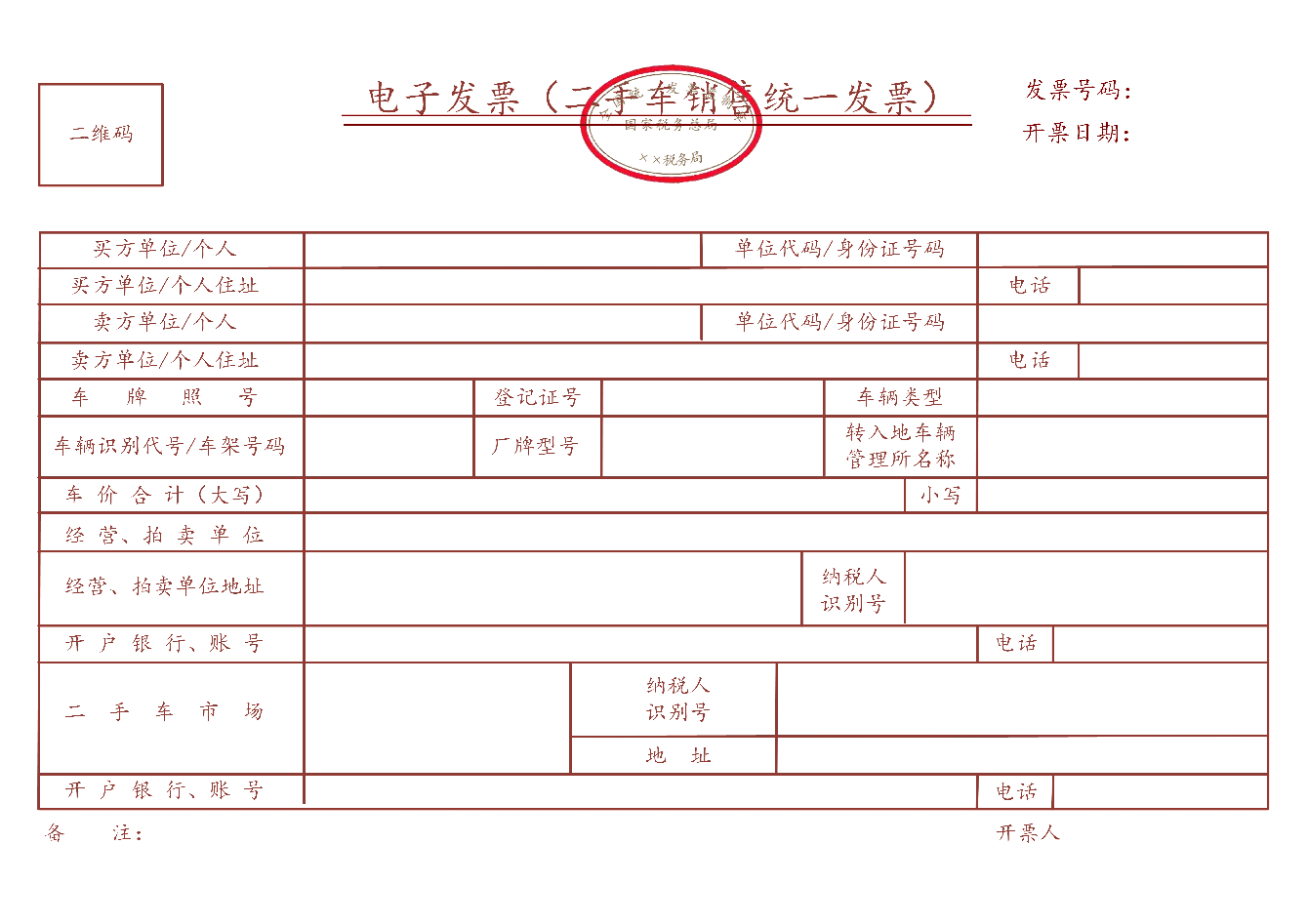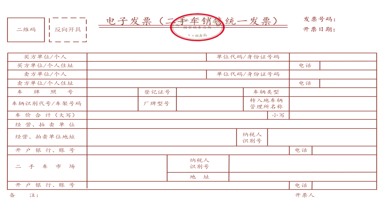 (一)二手車銷售統(tǒng)一發(fā)票(反向開具)票樣