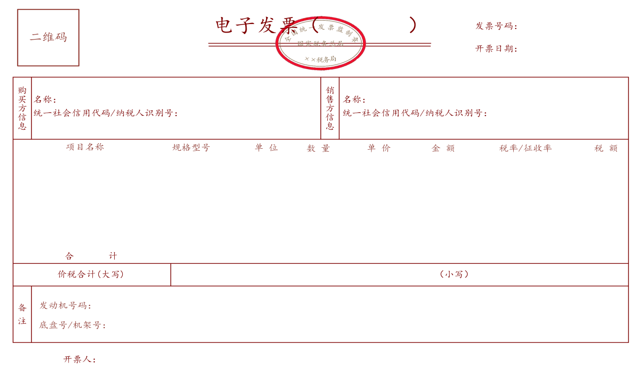 三、數(shù)電發(fā)票的票面基本內(nèi)容包括:發(fā)票名稱、發(fā)票號碼、開票日期、購買方信息、銷售方信息、項目名稱、規(guī)格型號、單位、數(shù)量、單價、金額、稅率/征收率、稅額、合計、價稅合計、備注、開票人等。